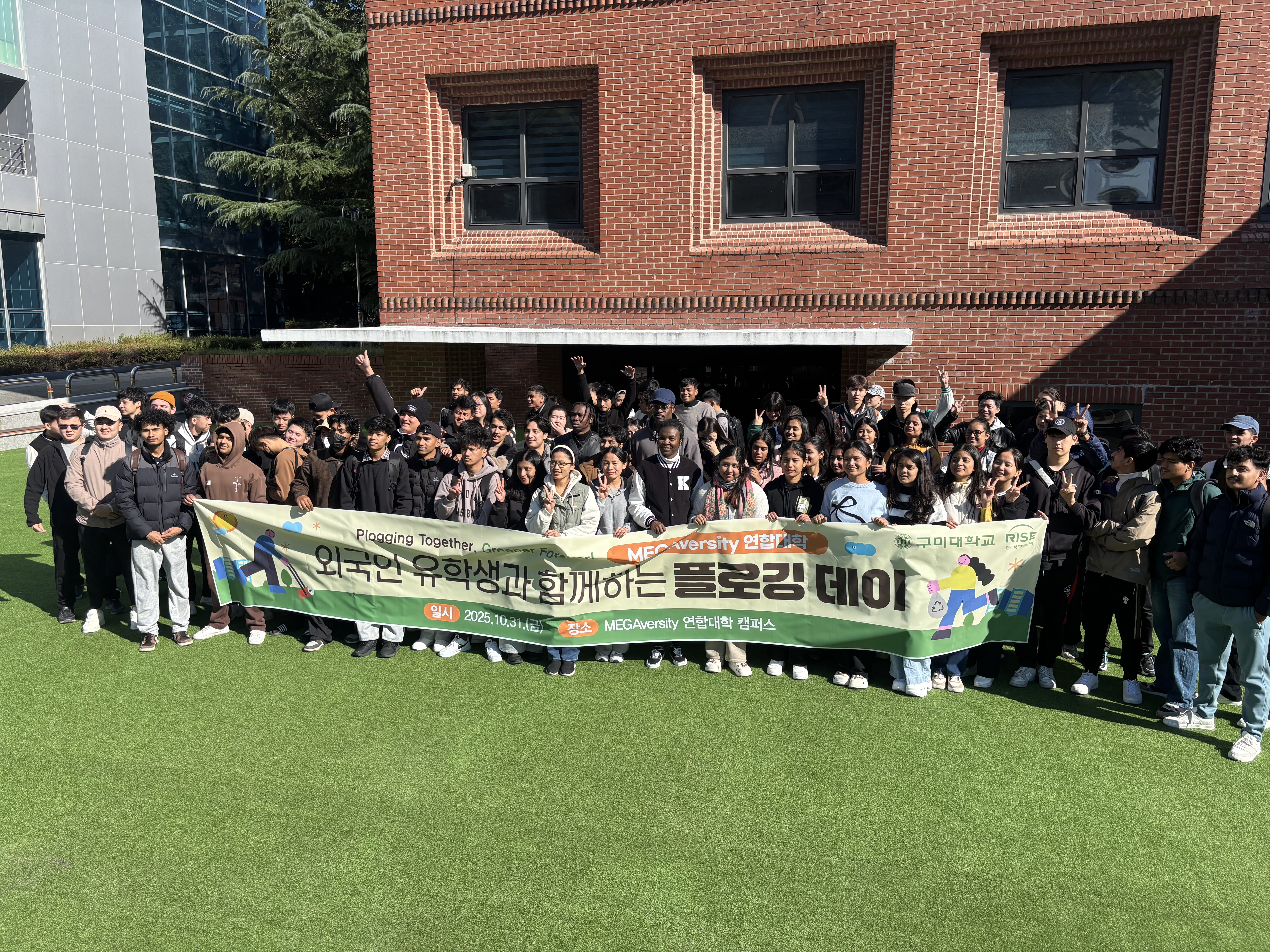 1. 행사명: 외국인 유학생과 함께하는 플로깅(Plogging) 데이2. 일 자: 2025. 10. 31.(금)3. 장 소: MEGAversity 연합대학 캠퍼스 및 주변 지역 일대4. 내 용 - 외국인 유학생들의 지역사회 환경 개선 활동으로 지역 주민과의 교류 확대 및 공동체 책임감 고취 - 지속 가능한 친환경 활동(ESG, 환경보호)을 통해 지역 혁신·대학 사회적 가치 실현